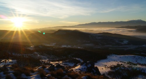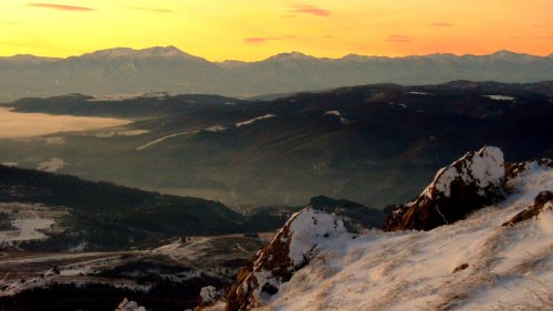 разхвърляните хълмища на Средногорието, Плана, Витоша,